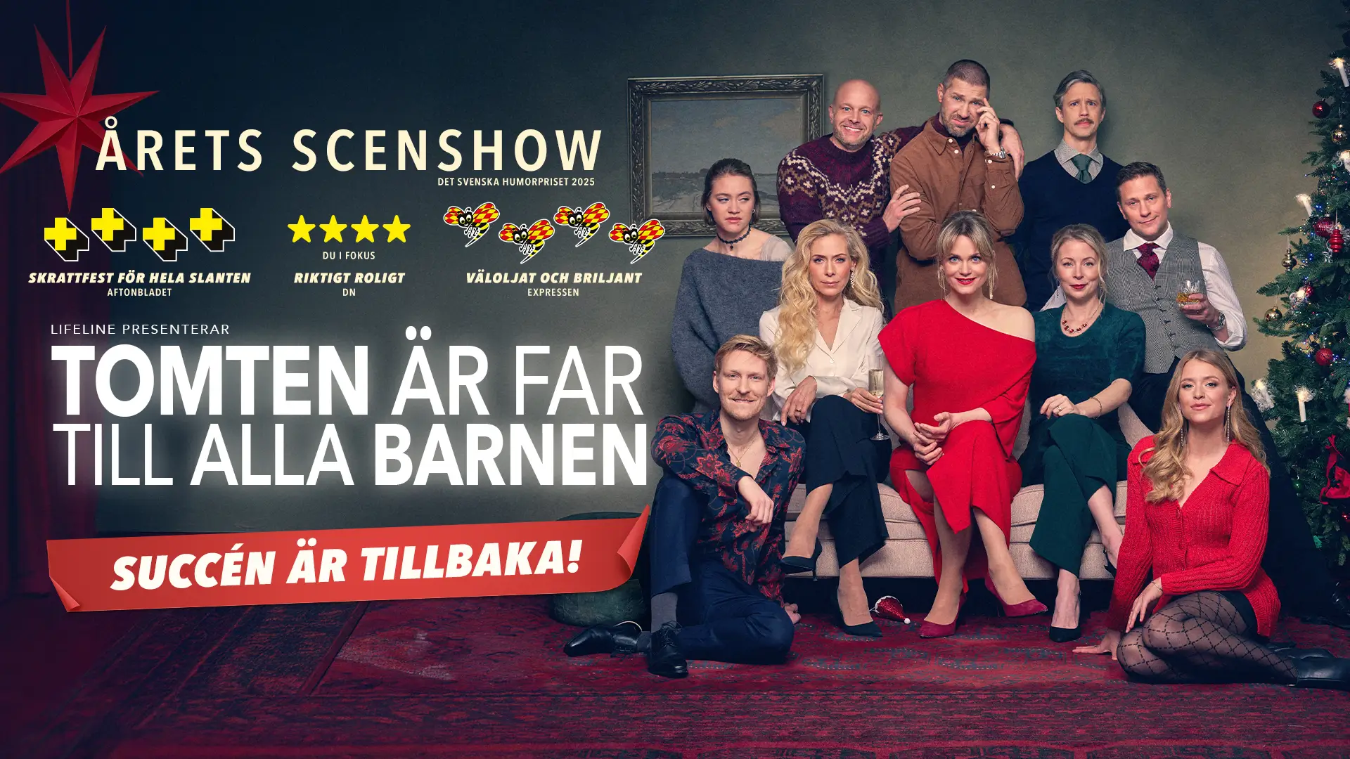 Efter utsålda föreställningar, publikens skratt och hyllningar från både kritiker och publik under 2024/2025 på Cirkus i Stockholm, så återvänder nu scensuccén Tomten är far till alla barnen till utvalda arenor i Sverige.